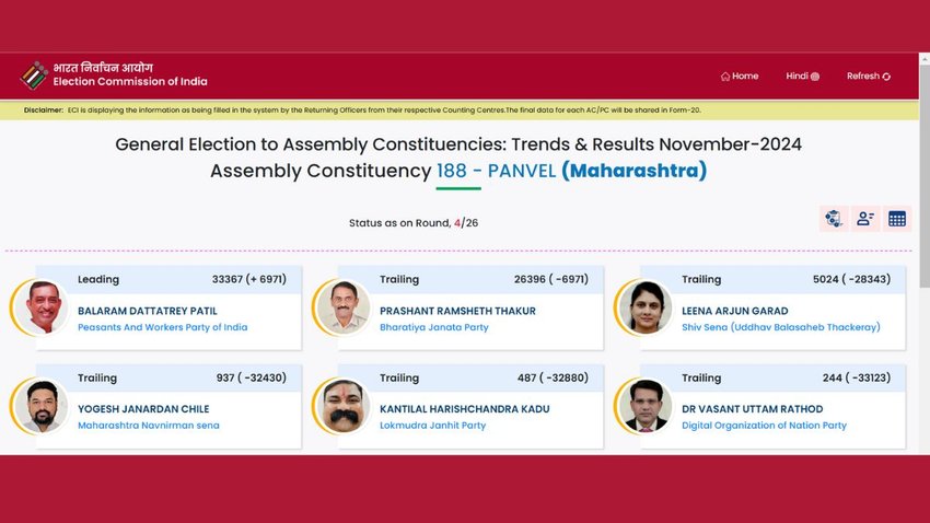 पनवेल विधानसभा सीट पर PWP ने बनाई बढ़त
