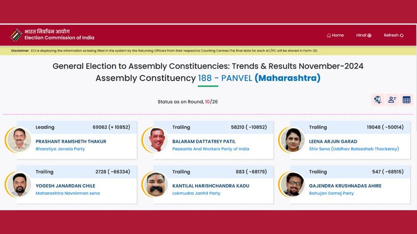 पनवेल में भाजपा के प्रशांत रामशेठ ठाकुर आगे