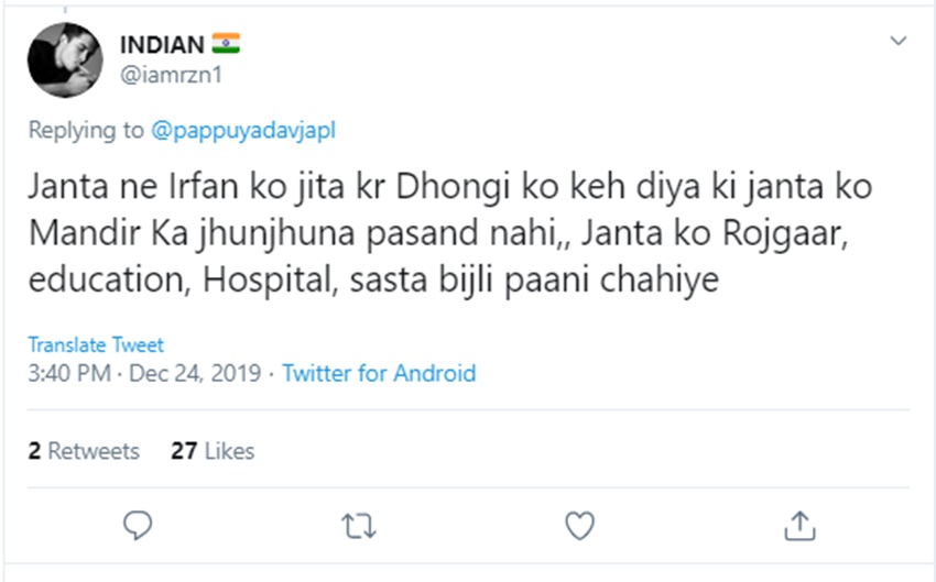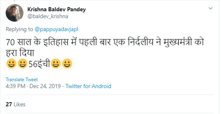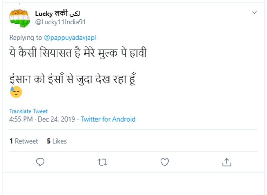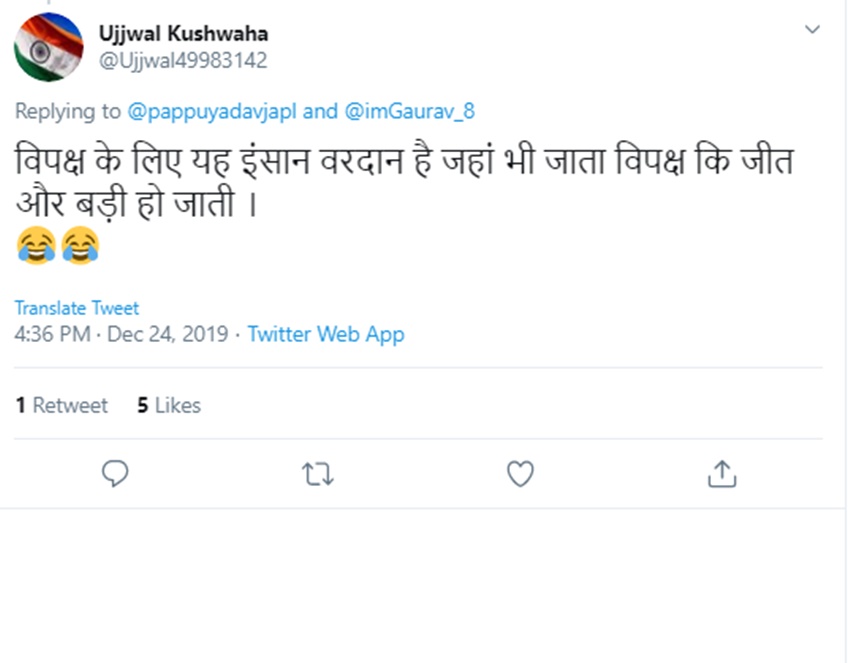 — Sewak Pappu Yadav (@pappuyadavjapl) December 24, 2019
