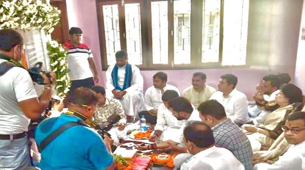 रविवार को पूर्व केंद्रीय मंत्री रामविलास पासवान की पहली बरसी के अवसर पर केंद्रीय खाद्य एवं प्रसंस्करण उद्योग मंत्री पशुपति पारस और उनके भतीजे चिराग पासवान एक साथ नजर आए। हालांकि दोनों के बीच दूरी साफ-साफ दिखाई दी। पारस ने रामविलास पासवान की पत्नी का पैर छूकर आशीर्वाद लिया। बरसी में रामविलास पासवान की पहली पत्नी भी पहुंची थीं, लेकिन सांसद प्रिंस राज और कृष्ण राज वहां नहीं पहुंचे थे।