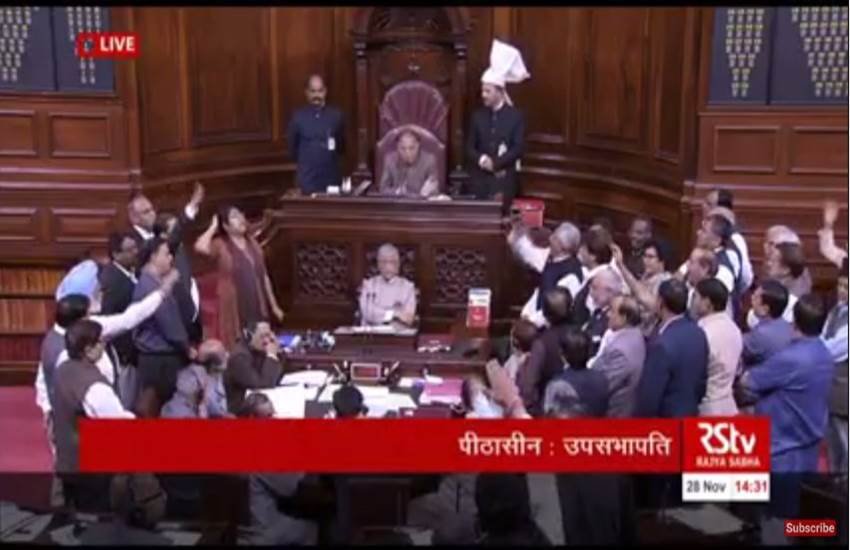 सोमवार को संसद के शीतकालीन सत्र के नौवें दिन नोटबंदी का मुद्दा छाया रहा। कांग्रेस के नेतृत्व में विपक्षी दलों ने नोटबंदी के खिलाफ देशव्यापी विरोध प्रदर्शन का आह्वान किया है। इसे “जन आक्रोश दिवस” का नाम दिया गया है। संसद में विपक्षी पार्टियों ने कार्यवाही से पहले बैठक बुलाई और पीएम मोदी से उनकी टिप्पणी को लेकर माफी की मांग की। राज्य सभा और लोक सभा दोनों में विपक्ष के हंगामे के चलते सदन की कार्यवाही दो बार स्थगित हुई। तीसरी बार दोनों सदन में कार्यवाही मंगलवार सुबह 11 बजे तक के लिए स्थगित कर दी गई।