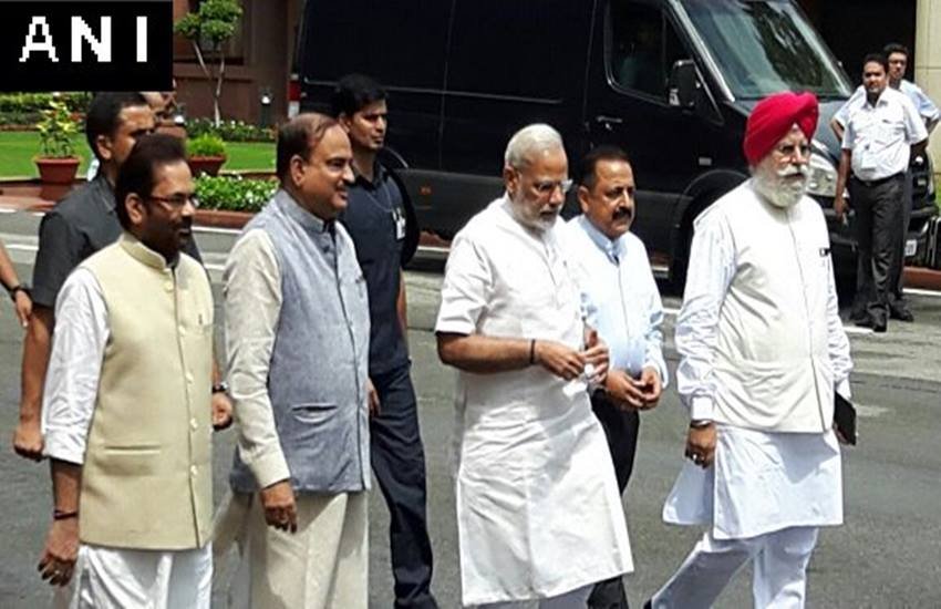 Delhi: PM Narendra Modi arrives at the Parliament for #MonsoonSession pic.twitter.com/2WgdaR1vYd