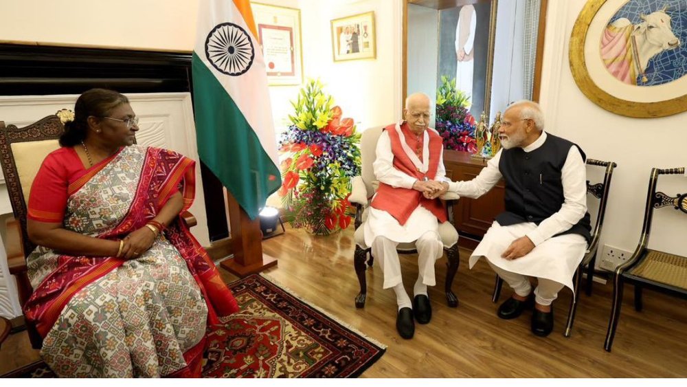 राष्ट्रपति द्रौपदी मुर्मू ने आज बीजेपी के वरिष्ठ नेता लाल कृष्ण आडवाणी को उनके घर पहुंच कर सम्मानित किया। इस मौके पर प्रधानमंत्री नरेंद्र मोदी, उपराष्ट्रपति जगदीप धनखड़, पूर्व उपराष्ट्रपति एम वेंकैया नायडू भी मौजूद रहे।