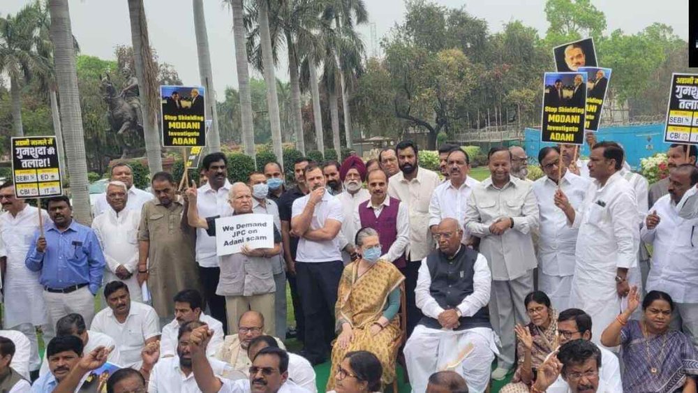 अडानी मुद्दे पर संसद में विपक्षी दल विरोध प्रदर्शन कर रहे हैं। इस प्रदर्शन में विपक्षी सांसद हिस्सा ले रहे हैं। कांग्रेस अध्यक्ष और राज्यसभा में विपक्ष के नेता मल्लिकार्जुन खड़गे और यूपीए अध्यक्ष सोनिया गांधी (UPA chairperson Sonia Gandhi) भी विरोध प्रदर्शन में हिस्सा ले रही हैं। अडानी मुद्दे पर चल रहे विरोध प्रदर्शन में आम आदमी पार्टी ने भी हिस्सा लिया।