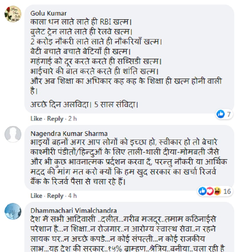 वहीं कुछ यूजर्स ने उनकी तरीफ भी कि है। हैदर रिजवी नाम के यूजर ने तंज कसते हुए लिखा है, किसी को कोई दिक्कत नही है…. पूरे देश के हर घर में सरप्लस अनाज एवं धन भरा पड़ा है। ये कश्मीरी पंडित मोदी जी को बदनाम करने के लिये ऐसा कर रहे होंगे।