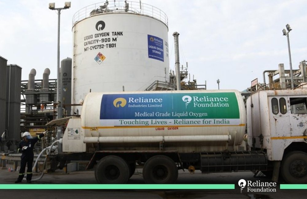 कोरोना महामारी के दौरान रिलायंस करीब 1000 मीट्रिक टन ऑक्सीजन का उत्पादन कर रही है और देश के कई राज्यों को मुफ्त में उपलब्ध करा रही है। रिलायंस के ओर से जारी बयान में कहा गया है कि जामनगर और दूसरी इकाइयों में करीब 1000 MT मेडिकल ग्रेड लिक्विड ऑक्सीजन का उत्पादन किया जा रहा है जो भारत के कुल मेडिकल ऑक्सीजन उत्पादन का 11 फीसदी है। जिससे करीब 1 लाख मरीजों को ऑक्सीजन उपलब्ध करवाया जा सकेगा।