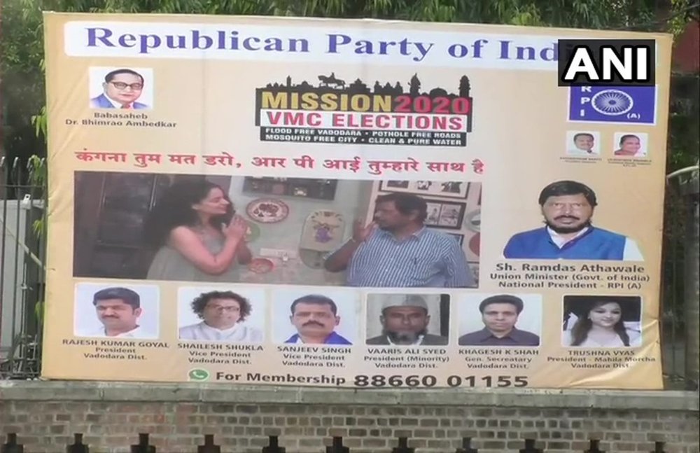 इस पोस्टर में रामदास अठावले के अलावा पार्टी के अन्य नेता भी नजर आ रहे हैं। इधर इस पोस्टर को लेकर गुजरात जिला प्रमुख ने न्यूज एजेंसी ‘ANI’ से बातचीत में कहा कि ‘इस तरह के पोस्टर्स पूरे राज्य में लगाए जाएंगे। इसके जरिए हम दिखाना चाहते हैं कि हम कंगना रनौत को सपोर्ट कर रहे हैं। हम वडोदरा म्यूनिसिपल कॉरपोरेशन चुनाव के लिए तैयार हैं।’