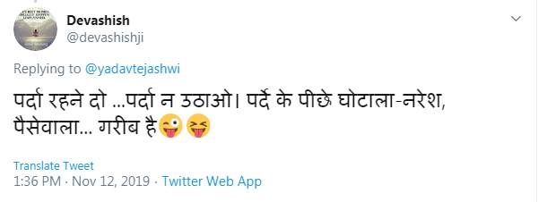 — Tejashwi Yadav (@yadavtejashwi) November 12, 2019