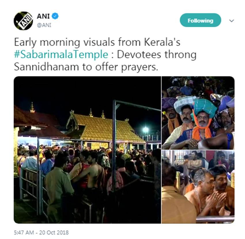 मंदिर के बाहर सुबह करीब साढ़े पांच बजे से श्रद्धालुओं की लंबी कतार लग गई थी, जबकि कुछ श्रद्धालु दर्शन के लिए मंदिर परिसर में पवित्र पथिनेत्तम को लांघ कर आगे बढ़े। पर 10 से 50 साल के आयुवर्ग के बीच की महिलाओं को अंदर नहीं जाने दिया गया।