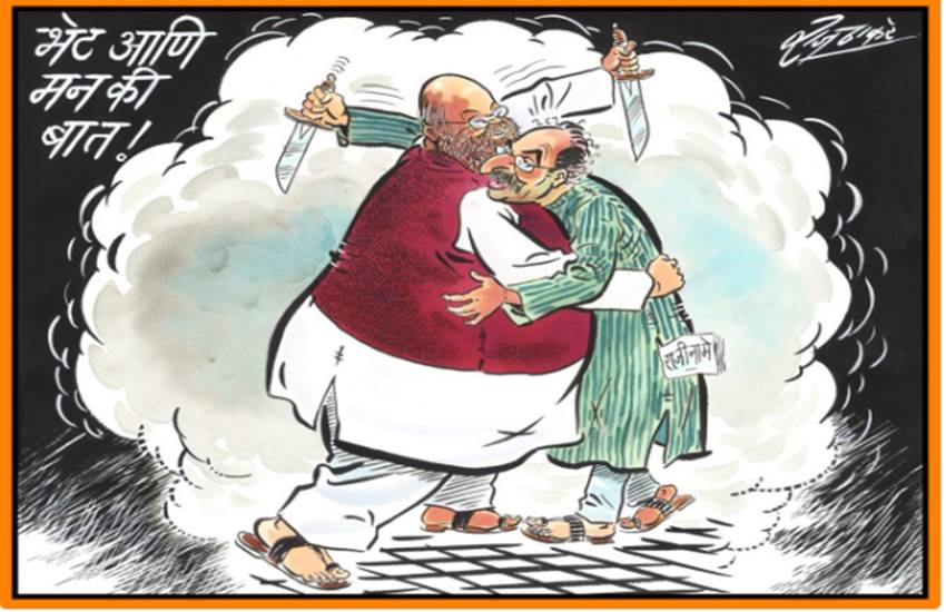 तेरा हिंदुत्व मेरा हिंदुत्व: शिवसेना के मुखपत्र सामना को दिए इंटरव्यू में उद्धव ठाकरे ने कहा कि वह देश में पिछले तीन-चार साल से चल रहे हिंदुत्व को स्वीकार करने के लिए तैयार नहीं हैं। उन्होंने कहा,”हिंदुत्व के बारे में हमारी ऐसी सोच नहीं है। गायों के संरक्षण की होड़ ने हमारे देश को महिलाओं के लिए सबसे असुरक्षित बना दिया है। हम गौ माता को बचा लेंगे लेकिन मेरी अपनी माता का क्या होगा? महिलाओं को बचाने के बजाय अगर किसी के पास बीफ है तो हम उस पर सवाल उठा रहे हैं। ये हिंदुत्व नहीं है।”