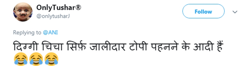सोशल मीडिया यूजर्स ने कुछ ऐसे भी कमेंट दिए, ‘ये याराना बना रहे’, ‘राजनीति की अच्छी तस्वीर’, मतभेद होना चाहिए, ‘मन भेद नहीं। आज ये आपने चरितार्थ किया।’ टि्वटर यूजर @Praffula_M लिखते हैं, “कांग्रेस जो दिग्विजय जी को समझती है, वैसे वो है नहीं वैसे।” रमण जगताप @RamanJagtap2 लिखते हैं, “भले ही हम दिग्विजय सिंह के विरोधी है लेकिन ऐसे पल दिल को खुशी देते हैं।” पवन गौतम @pawanibnmathura ने लिखा, “बहुत दिन बाद राजनीतिक जगत से अच्छी तस्वीर दिखी।”