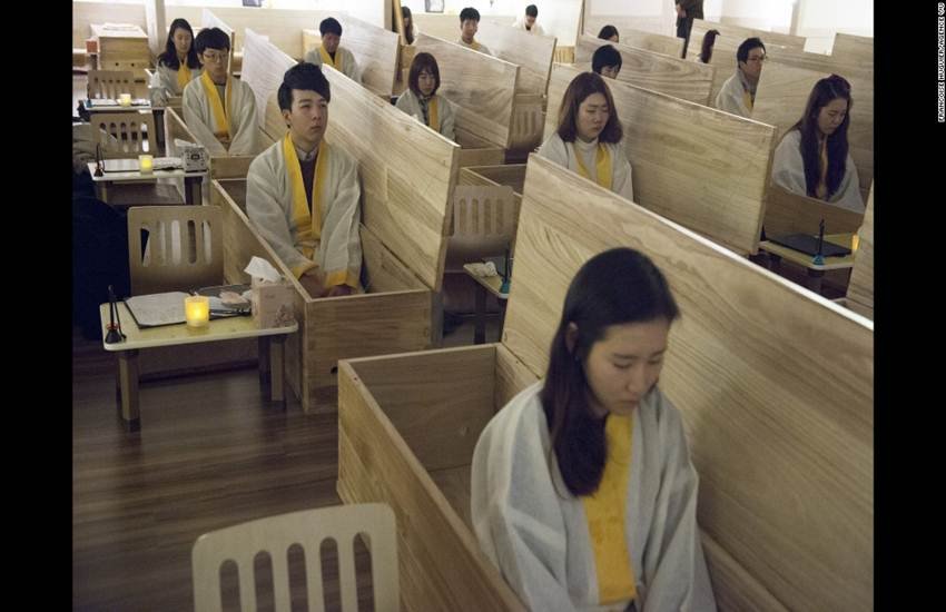 दुनिया भर में वैसे तो मरने के बाद लोगों को दफन करने या दाह-संस्कार की प्रथा है। लेकिन, दक्षिण कोरिया में जिंदा लोगों को ही कब्र में लिटाने की प्रथा परवान चढ़ रही है। यहां लोगों को पूरे विधि-विधान के साथ 10 मिनट तक कब्र में लेटाया जा रहा है। 2012 से शुरू होने वाले ह्मोवोम हीलिंग सेंटर द्वारा आयोजित कराए गए अंतिम संस्कार में अभी तक 25 हजार लोग हिस्सा ले चुके हैं। इसका एक मात्र उद्देश्य यह है कि लोग कब्र में लेटकर मौत को महसूस कर सकें और इसके बाद अपने वर्तमान को ठीक तरीके से जिएं।