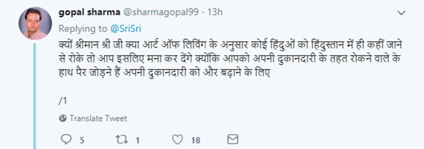 फिर क्या था, लोगों ने इन्हीं दोनों ट्वीट्स को लेकर श्री श्री को आड़े हाथों लिया। देखिए लोगों ने उनके लिए कैसे कैसे ट्वीट्स किए-