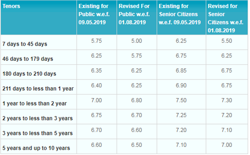 1 अगस्त, 2019 से एफडी पर ये नई ब्याज दरें लागू होंगी।