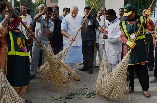 लोगों को भारत को स्वच्छ बनाने की शपथ दिलाते हुए मोदी ने कहा कि यह दायित्व केवल सफाई कर्मचारियों या सरकार का नहीं, बल्कि सभी 125 करोड़ भारतीयों का है। उन्होंने कहा कि गुरुवार के अभियान को महज फोटो खिंचवाने के अवसर के रूप में नहीं देखा जाना चाहिए। इससे पूर्व प्रधानमंत्री ने यहां सफाई कर्मियों की कालोनी वाल्मीकि बस्ती में खुद झाड़ू लगाकर एक फुटपाथ को साफ किया।
