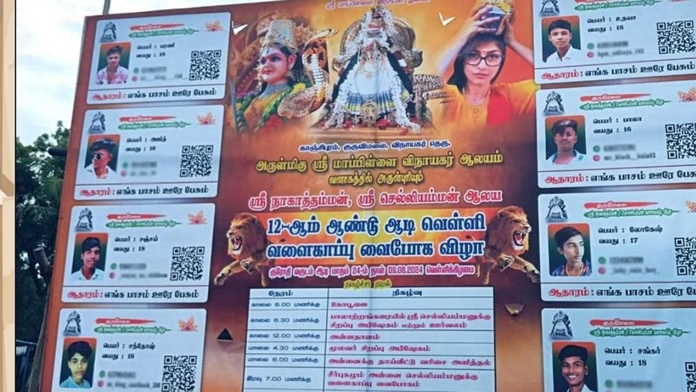 इंडिया टुडे की रिपोर्ट के अनुसार कुरुविमलाई में नागथम्मन और सेलियाम्मन मंदिरों में उत्सव मनाने के लिए सजावट के तौर पर होर्डिंग और लाइटें लगाई गई थीं। इस दौरान एक होर्डिंग में पार्वती देवी के साथ मिया खलीफा की तस्वीर भी लगी थी। इसे देखकर लोग चौंक गए। होर्डिंग पर आधार कार्ड जैसे फॉर्मेट में आयोजनकर्ताओं ने अपनी तस्वीरें भी लगाई थीं। पोस्टर जब सोशल मीडिया पर वायरल हुआ तो पुलिस ने इसे तुरंत हटा दिया।