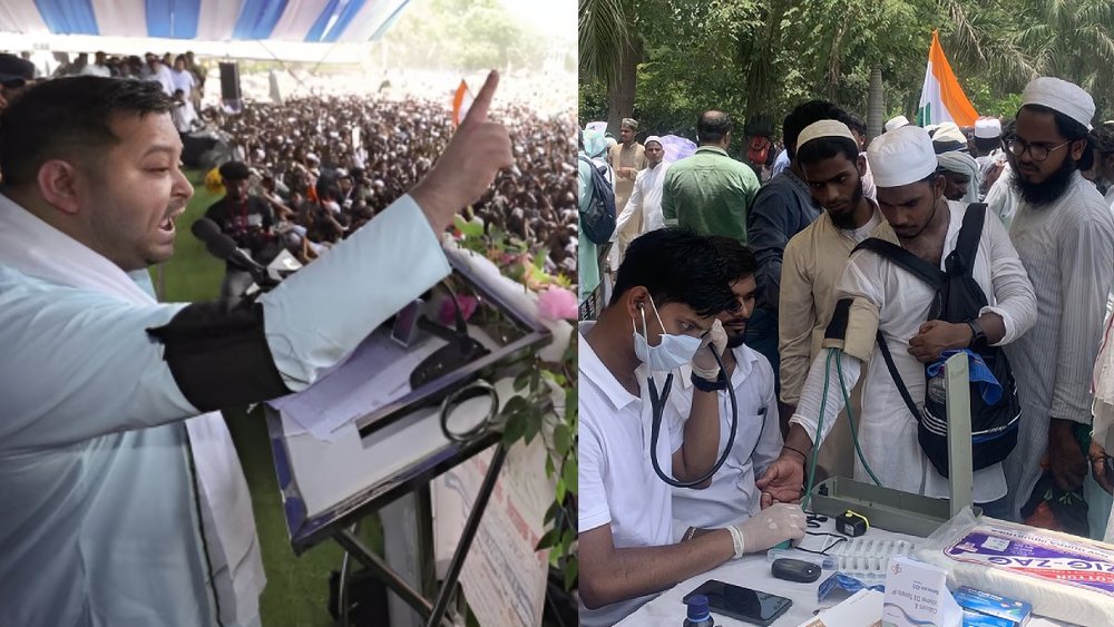 Waqf Amendment Act 2025: नए वक्फ कानून को लेकर एक बार फिर सियासी पारा चढ़ गया है। पटना के गांधी मैदान में वक्फ संशोधन अधिनियम के विरोध हुई रैली में रविवार देश के अलग अलग इलाकों से हजारों लोग पहुंचे। इस विरोध प्रदर्शन के मंच पर आरजेडी नेता तेजस्वी यादव और सांसद पप्पू यादव एक साथ नजर आए। तेजस्वी यादव ने कहा है कि इस कानून का बिहार चुनाव नतीजों के बाद कूड़ेदान में फेंक देगा।