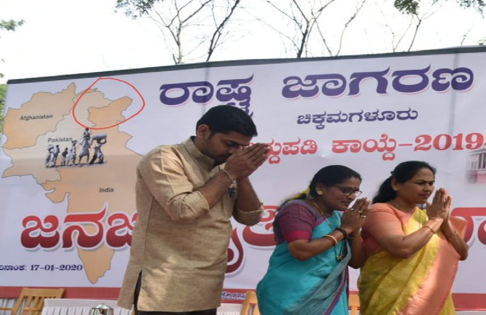 दरअसल, कर्नाटक की बीजेपी सांसद करंदलाजे ने जनवरी 2020 में सीएए के समर्थन में एक रैली आयोजित की थी। चिकमंगलूर में हुई इस रैली में मंच पर भारत का नक्शा गलत दर्शाया गया था। मंच पर लगे बैनर में जम्मू-कश्मीर का उत्तर-पूर्वी हिस्सा गायब था। हालांकि, जब सांसद ने नक्शे के चित्र के साथ ट्वीट किया तो गलती पकड़ में आ गई। कुछ यूजर्स ने इसे चिन्हित भी कर दिया, लेकिन पुलिस को शायद ये गलती उतनी पड़ी नहीं लगी। जाहिर है सांसद सत्ता पक्ष से ताल्लुक रखती हैं, लिहाजा एक्शन तो होना ही नहीं था।