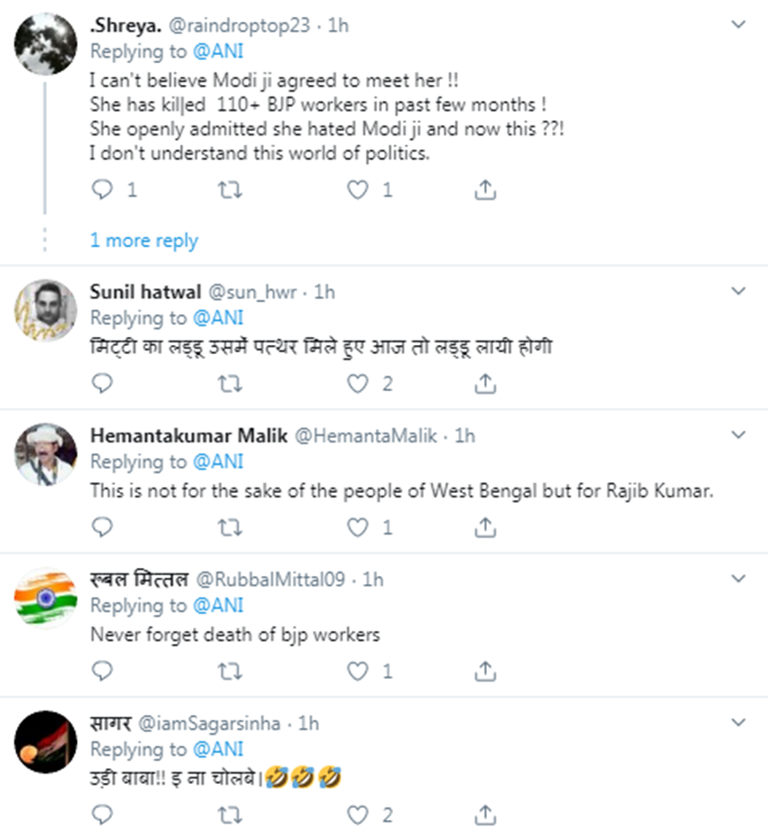 श्रेया के टि्वटर अकाउंट से पोस्ट में कहा गया- मुझे यकीन नहीं हो रहा है कि आखिर पीएम मोदी, ममता से मिलने के लिए राजी कैसे हो गए? उन्होंने कुछ महीने पहले 110 से अधिक बीजेपी कार्यकर्ताओं को मरवा दिया था! उन्होंने खुले तौर पर स्वीकारा था कि वह मोदी जी से नफरत करती हैं और अब??! मुझे यह राजनीति की दुनिया समझ नहीं आती है।