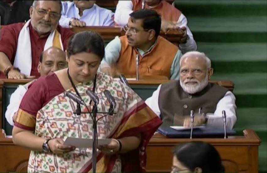 केंद्रीय कपड़ा मंत्री ईरानी ने उत्तर प्रदेश के अमेठी लोकसभा क्षेत्र से राहुल गांधी को 55 हजार वोटों के अंतर से पराजित किया। लंबे समय से गांधी परिवार का गढ़ माने जाने वाली इस सीट पर भाजपा नेता की जीत अत्यंत महत्वपूर्ण मानी जा रही है। सत्रहवीं लोकसभा के पहले सत्र में सोमवार को प्रधानमंत्री नरेन्द्र मोदी, रक्षा मंत्री राजनाथ सिंह और गृह मंत्री अमित शाह सहित नवनिर्वाचित सदस्यों ने निचले सदन की सदस्यता की शपथ ली। सदन की कार्यवाही शुरू होने पर सदस्यों ने परंपरा के अनुसार 17वीं लोकसभा की पहली बैठक के ‘‘पुनीत अवसर’’ पर कुछ मिनट का मौन रखा।