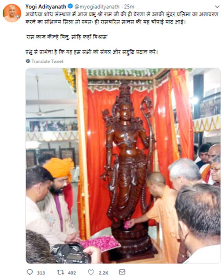 सीएम योगी के आधिकारिक टि्वटर हैंडल से देर शाम इस प्रतिमा के अनावरण को लेकर फोटो भी शेयर किया गया। देखें, उनका ट्वीटः