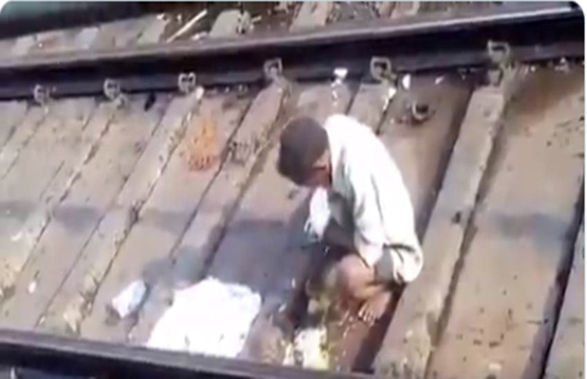 दिल्ली सांप्रदायिक हिंसा और संसदीय कार्यवाही की चर्चा के बीच सोशल मीडिया में एक वीडियो खूब वायरल हो रहा है। वायरल वीडियो में एक शख्स रेल की पटरियों पर पड़ा हुआ खाना खा रहा है। करीब आधा मिनट के वीडियो में निकर और शर्ट पहने शख्स रेल की पटरियों के बीच में बैठा वहां पड़ा हुआ खराब खाना खा रहा है। वीडियो में शख्स के आसपास खासी गंदगी भी नजर आती है, मगर वह इन सब अंजान सिर्फ अपना पेट भरने की कोशिश में जुटा है। वीडियो ट्विटर यूजर रवि नायर ने रविवार (1 मार्च, 2020) को शेयर किया है। इसे करीब 1,800 बार रिट्वीट किया जा चुका है और तीन हजार से ज्यादा लोगों ने लाइक किया है।