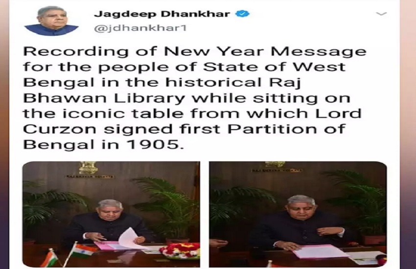ट्विटर पर लोगों ने पश्चिम बंगाल के राज्यपाल जगदीप धनखड़ को जमकर ट्रोल किया। क्योंकि इस सोशल साइट पर अपनी तस्वीर के साथ की गई पोस्ट में लॉर्ड कर्जन द्वारा बंगाल विभाजन के दस्तावेज पर हस्ताक्षर करने के लिए इस्तेमाल की गई मेज को ‘ऐतिहासिक’बताया था। सोशल मीडिया पर कई यूजर्स ने राज्यपाल की आलोचना करते हुए दावा किया कि उन्होंने अपने ट्वीट में विभाजन का महिमामंडन किया है।