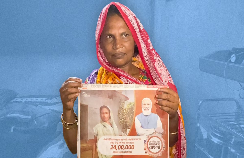 कुछ ही दिन पहले बंगाल के अखबारों में प्रधानमंत्री आवास योजना का एक विज्ञापन छपा था। विज्ञापन में प्रधानमंत्री नरेंद्र मोदी के साथ एक महिला की तस्वीर छपी थी। जिसके साथ लिखा था कि आत्मनिर्भर भारत,आत्मनिर्भर बंगाल और महिला के हवाले से लिखा गया था कि मुझे मिला अपना घर। लेकिन बाद में आए मीडिया रिपोर्ट के अनुसार जिस महिला की तस्वीर छपी थी उनका नाम लक्ष्मी देवी है और वो एक किराए के मकान में रहती है। पत्रकारों से बातचीत में उन्होंने किसी भी तरह के घर मिलने से साफ इनकार किया है।