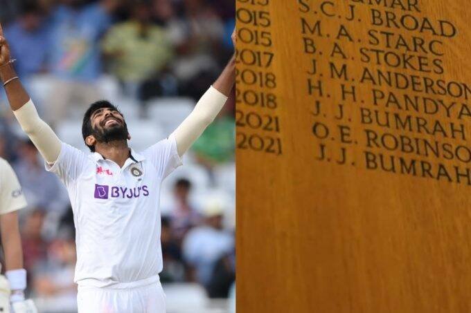 उनके अलावा भारतीय ऑलराउंडर हार्दिक पंड्या और कप्तान विराट कोहली का नाम भी इस बोर्ड पर दर्ज है। कप्तान कोहली ने भी 2018 दौरे में इसी मैदान पर 103 रनों की पारी खेलकर शतक बनाया था। अगर नॉटिंघम में जारी टेस्ट मैच की बात करें तो बुमराह के अलावा इस मैच में ओली रॉबिन्सन ने पांच विकेट लेकर और कप्तान जो रूट ने शतक लगाकर अपने नाम को भी ऑनर बोर्ड पर दर्ज करवाया है।