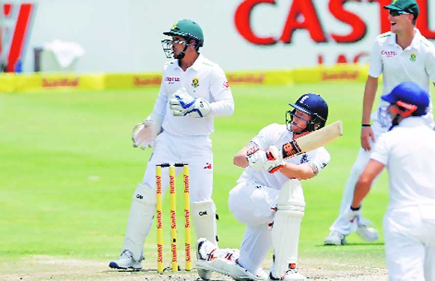 निक कांपटन भी 60 गेंद में 15 रन बनाने के बाद आफ स्पिनर डेन पीट की गेंद पर फाफ डु प्लेसिस को कैच दे बैठे। इंग्लैंड ने दूसरे सत्र में बेन स्टोक्स और जेम्स टेलर के विकेट गंवाए। पहली पारी में 258 रन बनाने वाले स्टोक्स 26 रन बनाने के बाद पीट की गेंद को उठाकर खेलने की कोशिश में मिडविकेट बाउंड्री पर मोर्कल को कैच दे बैठे। टेलर भी पीट के अगले ओवर में शार्ट लेग पर तेंबा बावुमा को कैच थमा बैठे। उन्होेंने 37 रन बनाए जबकि इस समय टीम का स्कोर छह विकेट पर 116 रन हो गया। बेयरस्टा और मोइन ने हालांकि इसके बाद टीम को और झटके नहीं लगने दिए।