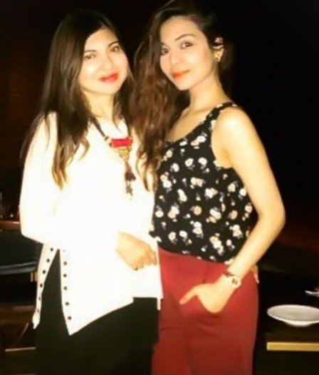 सायशा का नाम इंडियन आइडल फेम राहुल वैद्य से भी जुड़ चुका है हालांकि बाद में दोनों ने इसे अफवाह बताया। पिक्चर में सायशा अपनी मां और पिता के साथ।