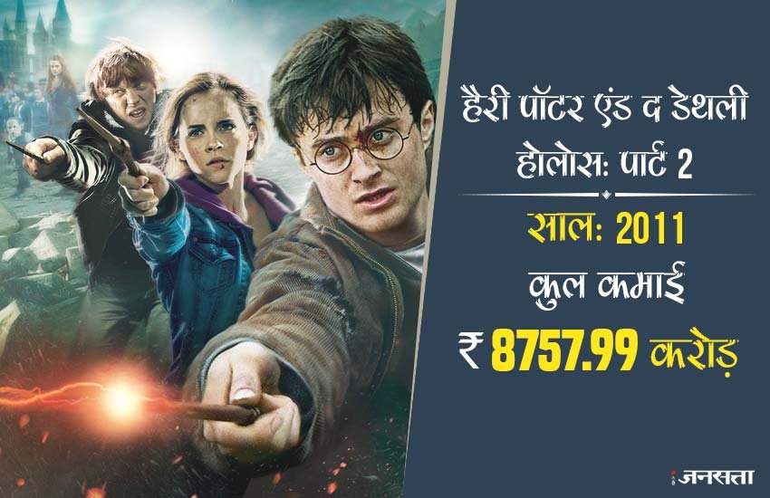 हैरी पॉटर एंड द डेथली होलोस: पार्ट 2 : साल 2011 में रिलीज हुई इस फिल्म में डैनियल रैडक्लिफ, एम्मा वाटसन, रूपर्ट ग्रांट, माइकल गैंबोन समेत कई सितारे नजर आए थे। फिल्म का निर्देशन डेविड येट्स ने किया है। इस फिल्म ने दुनियाभर के सिनेमाघरों से 8757.99 करोड़ रुपए की कमाई कर ली है। -