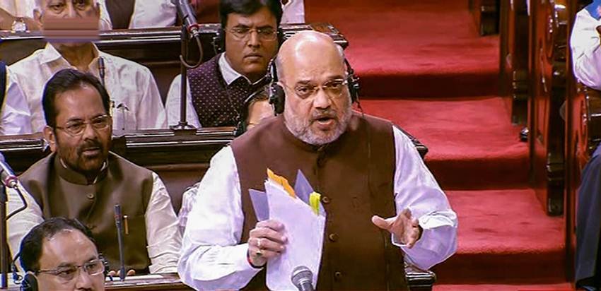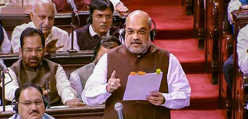 पिछले कुछ दिनों से कश्मीर मसले पर चल रहे सस्पेंस से केंद्रीय गृहमंत्री अमित शाह ने आज राज्यसभा में पर्दा उठा दिया। अमित शाह ने राज्यसभा में धारा 370 को खत्म करने का संकल्प रखा। उन्होंने कहा कि आर्टिकल 370 की सभी धाराएं जम्मू-कश्मीर में लागू नहीं होंगी। इस प्रपोजल के साथ ही अमित शाह ने राज्यसभा में ये भी बताया कि अब जम्मू कश्मीर के पास राज्य का दर्जा नहीं रहेगा। जम्मू-कश्मीर केंद्रशासित प्रदेश कहलाएगा। साथ ही अब से लद्दाख भी अलग केंद्रशासित राज्य होगा। आज सुबह से ही मीडिया की निगाहें अमित शाह पर थीं। कभी वह मीडिया के सामने मुस्कुराते दिखे तो कभी संसद में विरोधियों पर गरम होते भी दिखें। (Photo Source: PTI)