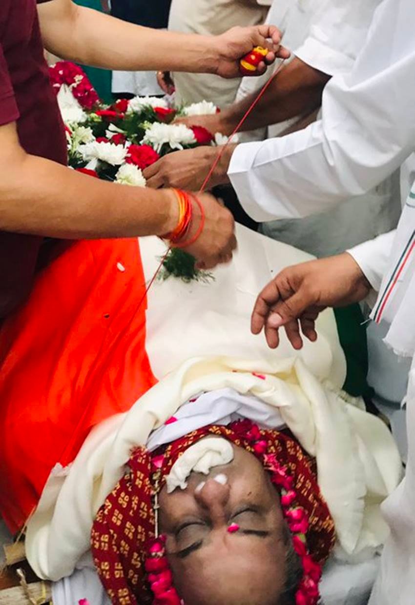 कांग्रेस प्रवक्ता राजीव त्यागी (Rajeev Tyagi) का बुधवार की शाम कार्डियक अरेस्ट के तलते निधन हो गया। अपनी मौत से कुछ समय पहले तक वह न्यूज चैनल के लाइव डिबेट में मौजूद थे। डॉक्टर का कहना है कि डिबेट शो के दौरान ही उनकी तबीयत बिगड़ी। कांग्रेस प्रवक्ता रागिनी नायक (Ragini Nayak) ने राजीव त्यागी के पार्थिव शरीर की तस्वीरें शेयर कर अप्रत्यक्ष रूप से बीजेपी के संबित पात्रा(Sambit Patra) पर निशाना साधा है: