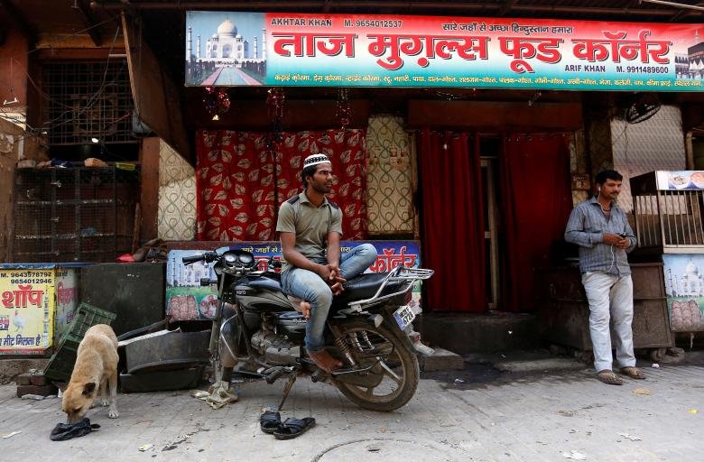 हरियाणा के गुरुग्राम में एक बंद रेस्टोरेंट के सामने बैठ कर सड़क को देखता एक मुस्लिम युवक। (March 29, 2017. REUTERS/Cathal McNaughton) -