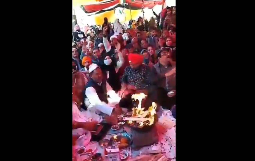 рд╣рд╡рди рдХреЗ рд▓рд┐рдП рдЖрдП рдкрдВрдбрд┐рдд рдиреЗ рдореБрд╕рд▓рдорд╛рдиреЛрдВ рд╡рд╛рд▓реА рдЬрд╛рд▓реАрджрд╛рд░ рдЯреЛрдкреА рдкрд╣рди рдкреВрдЬрд╛ рд╕рдВрдкрдиреНрди рдХрд░рд╡рд╛рдИред