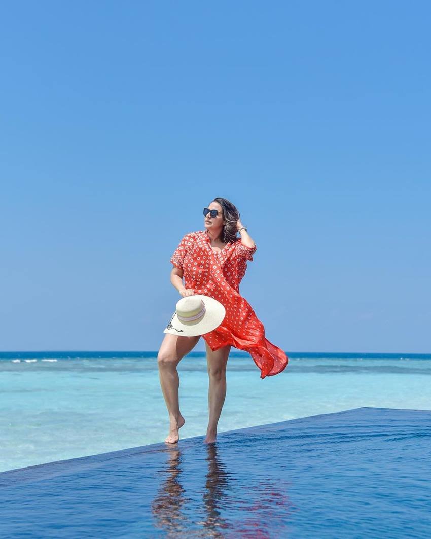 नेहा धूपिया मालदीव्स के नीले समुंदर के मजे लेती दिख रही हैं।
