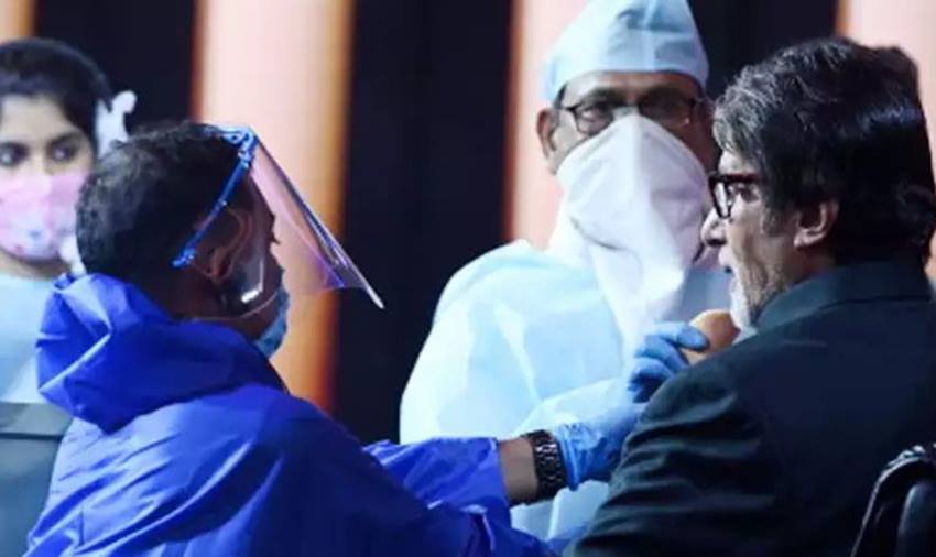 अमिताभ बच्चन केबीसी के सेट पर जिससे भी मिलते हैं उसे मास्क लगाने औऱ उचित दूरी बनाए रखने की सलाह देते हैं।