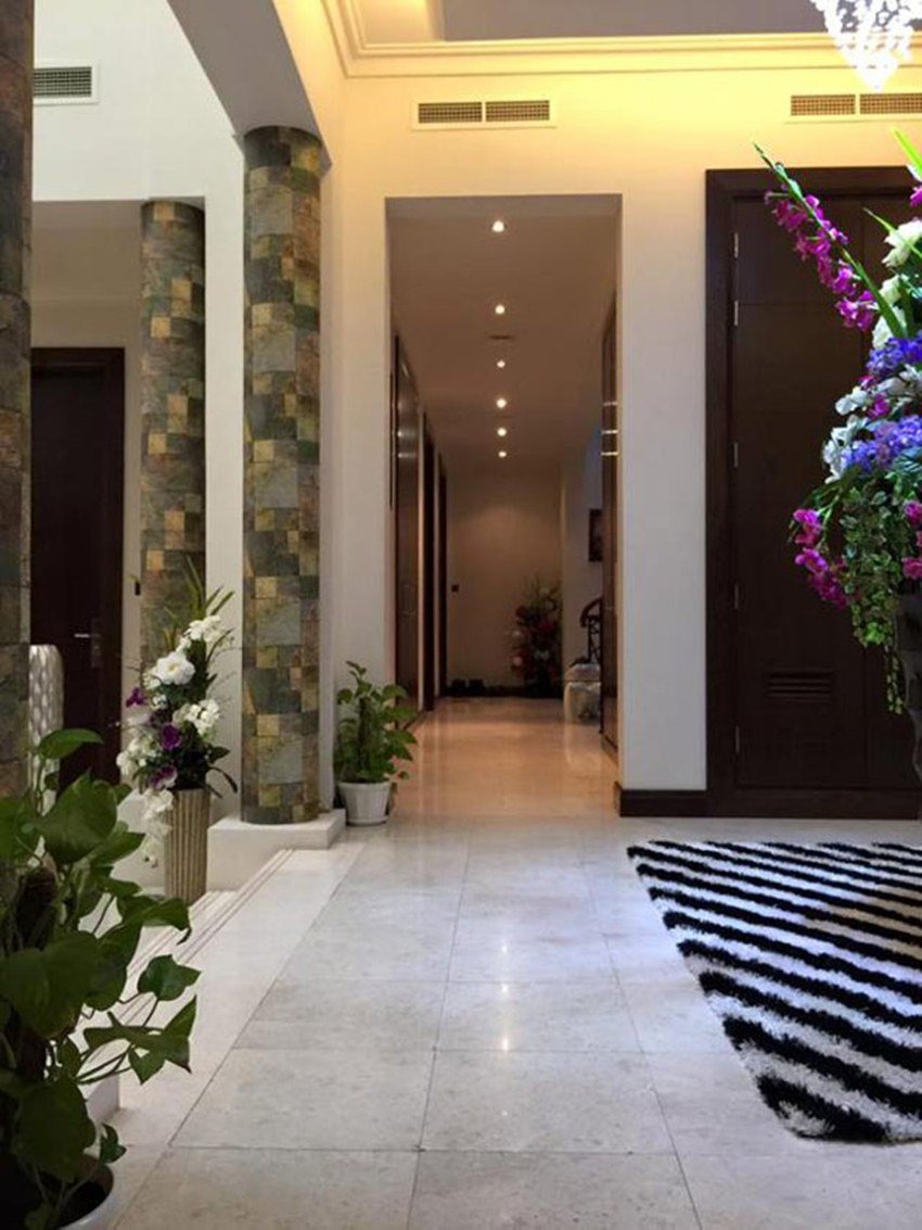 घर में लॉबी से लेकर लिविंग रूम तक में फूलों से सजावट की गई है। -
