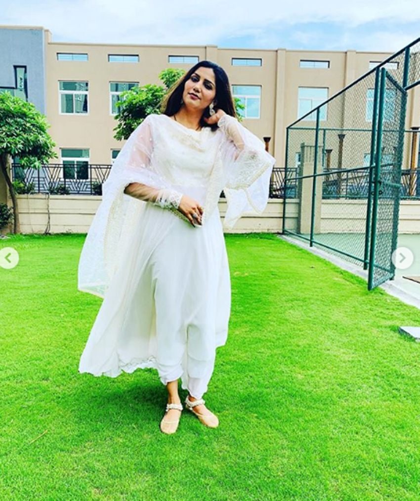सपना चौधरी व्हाइट सलवार सूट में काफी प्यारी लग रही हैं। -