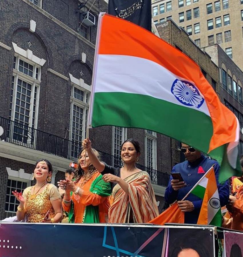 बता दें कि हिना खान ऐसी पहली टीवी एक्ट्रेस हैं जिन्हें न्यूयॉर्क के इंडिया डे परेड में तिरंगा लहराने का मौका मिला है।