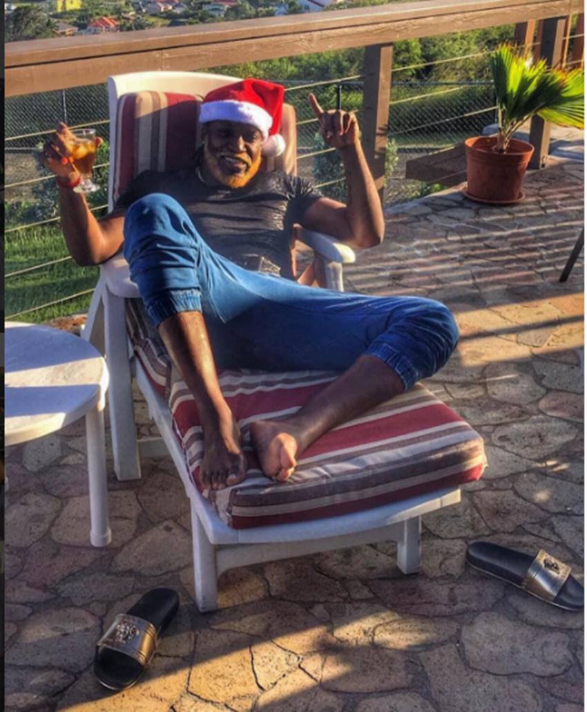 क्रिस गेल अपने अनोखे अंदाज में जश्न मनाने और लाइफ को एंजॉय करने के लिए जाने जाते हैं। सेंट कीट्स आईलैंड में बीच पर मस्ती करते क्रिस गेल।(Photo: Instagram) -
