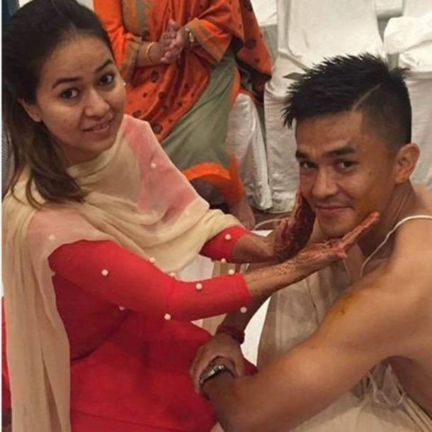 सुनील छेत्री अपनी पत्नी सोनम के साथ।
