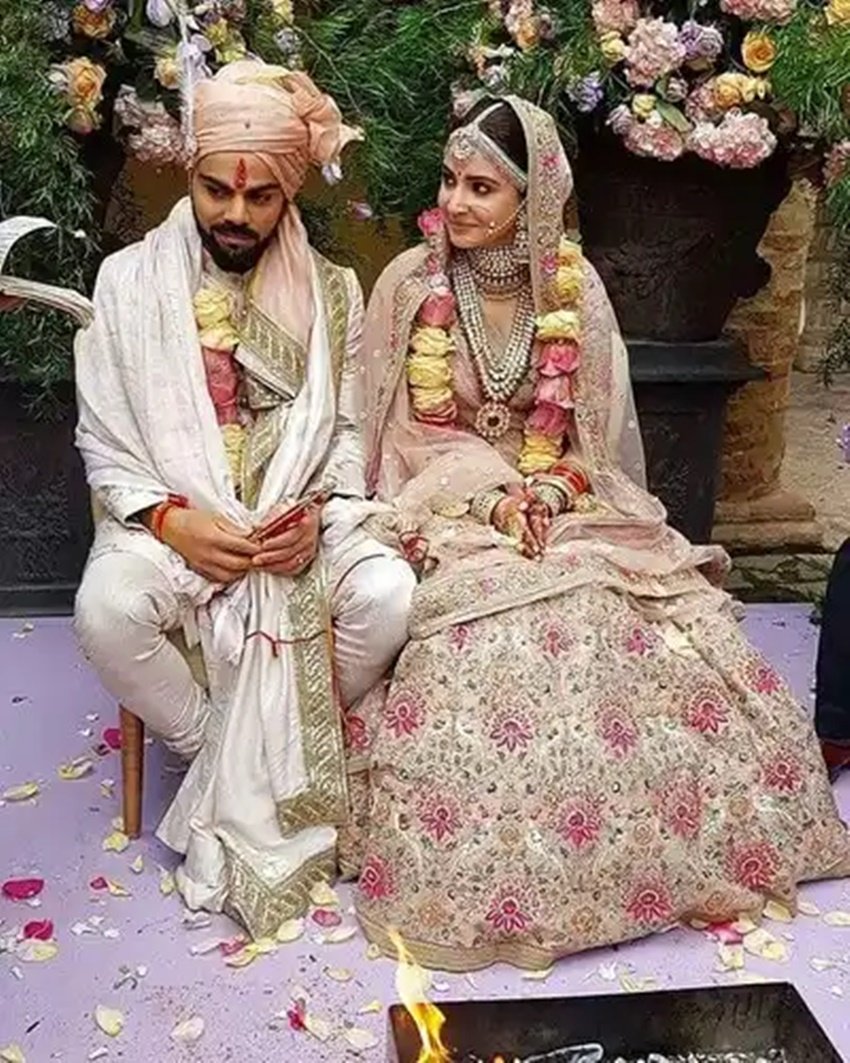 दुल्हन के लिबास में अनुष्का एक दम स्वर्गलोक की अप्सरा जैसी दिख रही थीं। खुद विराट अपनी बीबी के चेहरे से नजरें नहीं हटा पा रहे थे। सोशल मीडिया पर दोनों की खूब पिक्स वायरल हुई थीं। -