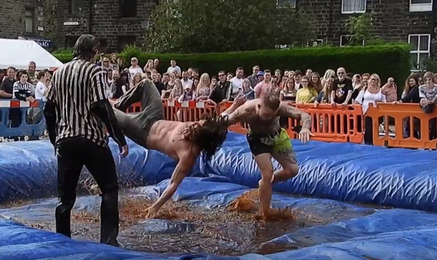 दुनिया में अजीब खेलों की कोई कमी नहीं है। किसी भी देश में आपको एक ऐसा खेल तो जरूर मिल ही जाएगा जिसके बारे में जानकर आपको हैरानी होगी! इन खेलों का आयोजन एंटरटेनमेंट के लिए या अमूमन किसी चैरिटी के लिए जाता है। (Source: YouTube) ऐसे ही एक अजीब खेल के बारे में हम आपको बताएंगे। इंग्लैंड में 10वां एनुअल वर्ल्ड ग्रेवी रेसलिंग चैंपियनशिप का आयोजन हुआ है। (Source: YouTube) यह खेल भी काफी अजीब लेकिन बहुत मजेदार है। इसका आयोजन इंग्लैंड के बेकप शहर में हुआ। चैंपियनशिप का मकसद चैरिटी के लिए पैसा जुटाना था। लगभग 100 खिलाड़ियों ने इसमें हिस्सा लिया। (Source: YouTube) अब आपको बताते हैं कि यह खेल आखिर क्या बला है! इसमें भी खिलाड़ियों को रेसलिंग करनी होती है लेकिन अखाड़ा ग्रेवी से भरा होता है। खिलाड़ियों को प्याज, लहसुन, शक्कर, आटे से बनी 1000 लीटर ग्रेवी में कुश्ती लड़नी होती है। इसे लंकाशायर ग्रेवी कहते हैं। (Source: YouTube) खिलाड़ी भी अजीब कॉस्ट्यूम पहनकर हिस्सा लेते हैं। बिलकुल किसी फेंसी ड्रेस कंपटीशन की तरह। (Source: YouTube) इंग्लैंड में यह खेल काफी लोकप्रिय है। सैकड़ों लोग इसे देखने के लिए बड़ी तादद में जमा होते हैं। (Source: YouTube) दुनिया के टॉप-10 सबसे अजीब खेलों में इसे भी शुमार किया जाता है। यह चैंपियनशिप 10 साल पहले शुरू हुई थी। (Source: YouTube) खेल सिर्फ 2 मिनट का होता है। एक मैच सिर्फ 2 मिनट का होता है।(Source: YouTube) जीतने वाले का फैसला उसके कॉस्ट्यूम, रेसलिंग एबिलिटी, मूव्स से होता है। रिंग में एक रेफरी भी मौजूद होता है। (Source: YouTube) वहीं इस कुश्ती की एक मजेदार बात यह भी है कि लड़ने वाले रेफरी को भी पीट देते हैं। कुश्ती सिर्फ मजाक-मस्ती के लिए लड़ी जाती है, जिसमें रेफरी को भी पीट दिया जाता है। (Source: YouTube) कश्ती के लिए तैयार किया गया पूल या रिंग 14×13 फीट का होता है। (Source: YouTube)