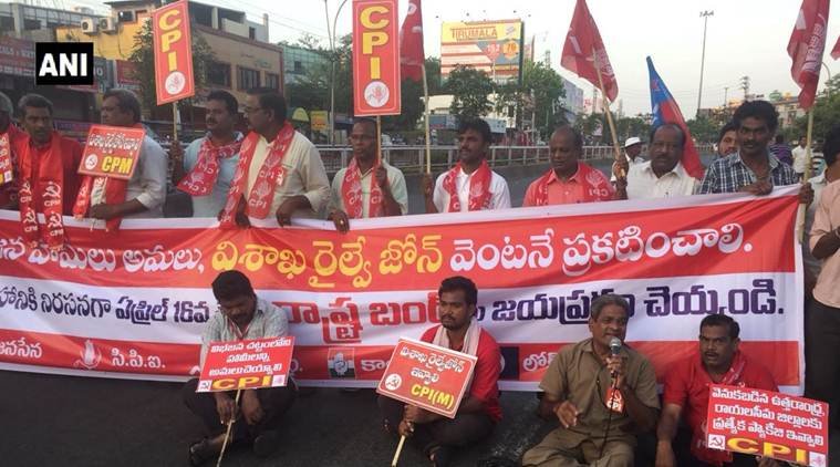 भारतीय जनता पार्टी (भाजपा) को छोड़कर सभी विपक्षी पार्टियों के नेताओं व कार्यकताओं ने राज्य भर में विरोध प्रदर्शन किया। ये लोग सुबह ही सड़कों पर उतर आएं और राज्य को विशेष दर्जा देने और आंध्र के विभाजन के समय किए गए अन्य वादों से मुकरने के लिए केंद्र सरकार के खिलाफ नारेबाजी करने लगे। प्रदर्शनकारियों ने विरोध प्रदर्शन के दौरान सड़कें अवरुद्ध कर दी और एपीएसआरटीसी डिपो से बसों को बाहर आने नहीं दिया। तीनों क्षेत्रों – उत्तर व दक्षिण तटीय आंध्र और रायलसीमा में बस सेवाएं पूरी तरह से ठप हो गईं।