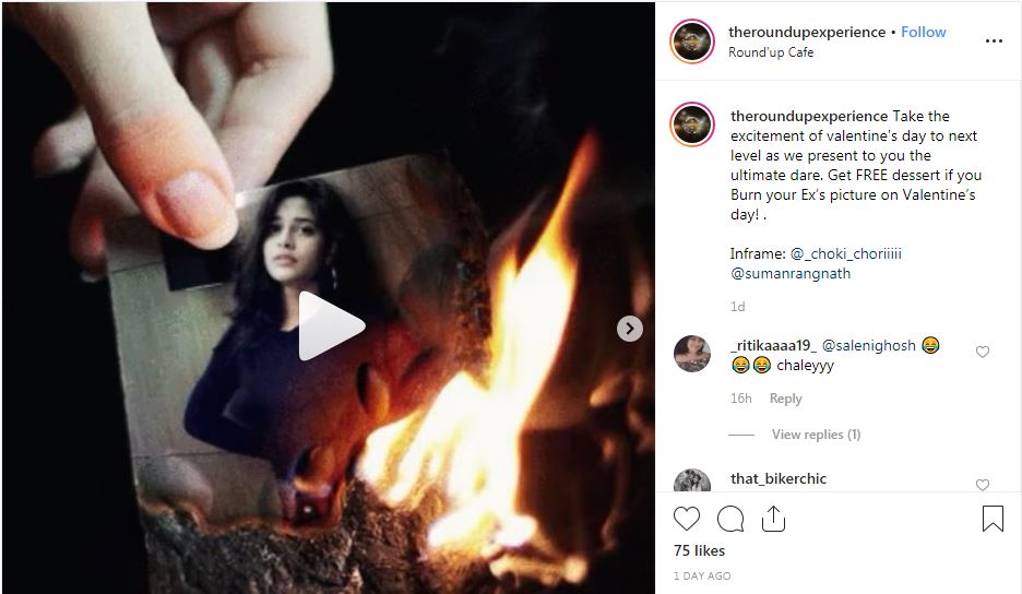 ऐसा है अनोखा ऑफर : अगर आप अपने एक्स को जहरीले सांप से ज्यादा खतरनाक मानते हैं या उससे कॉकरोच से ज्यादा नफरत करते हैं तो बेंगलुरु के इस कैफे में आइए और उनके मुताबिक करते हैं तो आपको मिठाई फ्री मिलेगी। बेंगलुरु के कोरमंगला स्थित राउंड कैफे ने ऑफर दिया कि जो भी मेहमान अपने एक्स का फोटो उनके सामने जलाता है, उसे मिठाई फ्री खिलाएंगे। कैफे ने अपने इस यूनीक ऑफर को अपने इंस्टाग्राम अकाउंट पर भी शेयर किया है। उन्होंने लिखा है, ‘‘अगर इस वेलेंटाइन-डे पर आप अपने रोमांच को दूसरे लेवल तक ले जाना चाहते हैं तो हम आपके लिए यह गेम लेकर आए हैं। अगर आप वेलेंटाइन-डे पर अपने एक्स का फोटो जलाते हैं तो मिठाई फ्री मिलेगी।’’