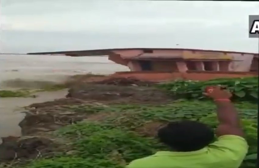 #WATCH: Part of a school building collapses into Koshi river in Naugachhia area of Bhagalpur district following heavy rains and floods. #Bihar (13/7) pic.twitter.com/vFMiugNyhY