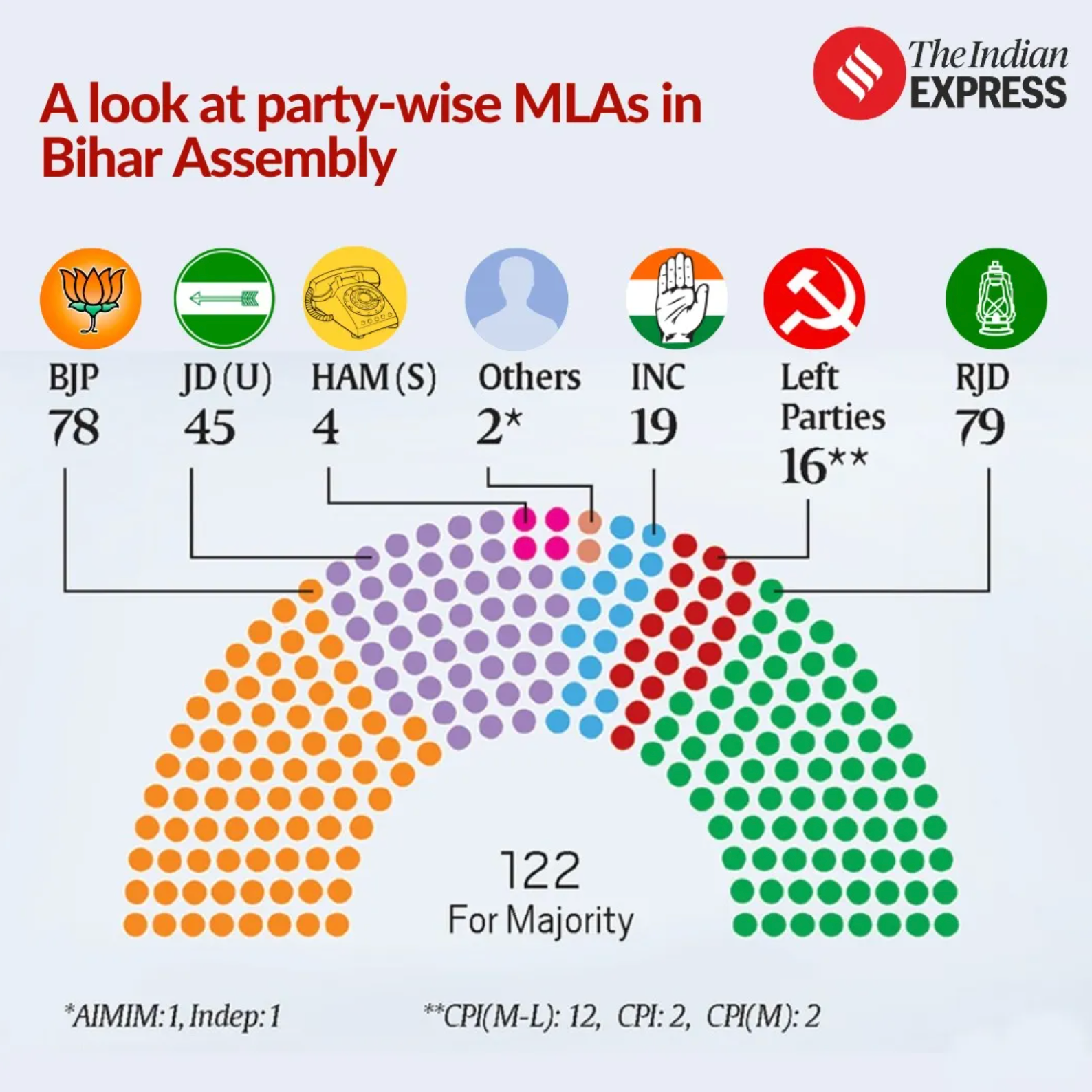 बिहार विधानसभा में किस पार्टी के कितने विधायक
