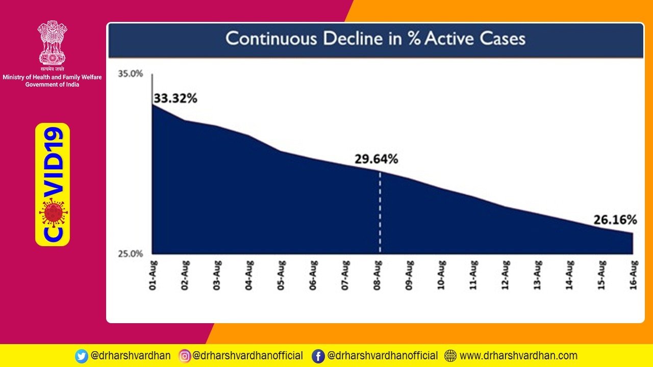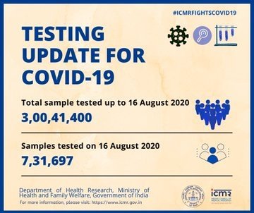 केन्द्रीय स्वास्थ्य मंत्रालय के अनुसार 19,19,842 लोग अब तक संक्रमण से मुक्त हो चुके हैं, जिससे देश में कोरोना वायरस से ठीक होने वाले मरीजों की दर 72.51 प्रतिशत हो गई है। भारतीय आयुर्विज्ञान अनुसंधान परिषद (आईसीएमआर) के आंकड़ों के अनुसार देश में कोविड-19 को लेकर अब तक तीन करोड़ से अधिक नमूनों की जांच की जा चुकी है। आंकड़ों के अनुसार पिछले 24 घंटे में कोरोना वायरस से 941 और लोगों की मौत के बाद देश में मृतक संख्या बढ़कर 50,921 हो गई। हालांकि वायरस से मृत्यु दर में गिरावट आई है और यह 1.92 प्रतिशत हो गई है।